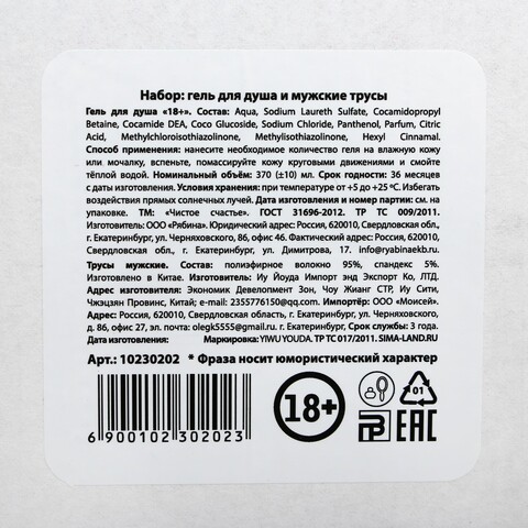 Классный и дерзкий набор для непредсказуемых шутников: гель для душа 370 мл и мужские трусы в упаковке под названием «Альфа-самцу 18+». Веселое оформление, яркие принты и намек на юмор делают этот набор подходящим подарком для веселых компаний и тех, кто любит нестандартные сюрпризы. Подойдет как забавный подарок для друзей, коллег или второй половинки, если ценится шутливый подход к подаркам.