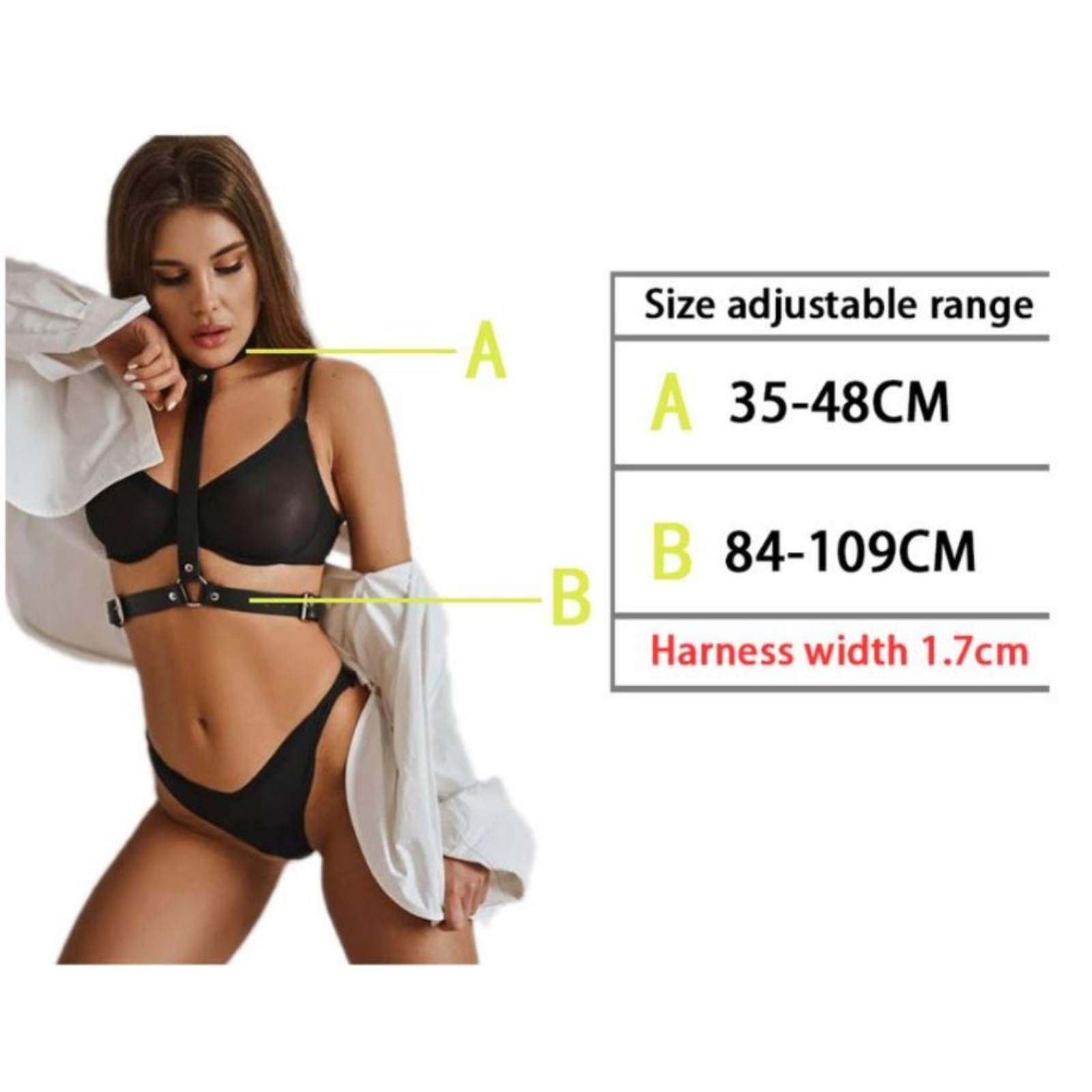 Портупея выполнена из эко-кожи. При помощи ремней портупею можно регулировать, это обеспечит идеальную посадку изделия на теле. Она создаёт сексуальный узор на теле.