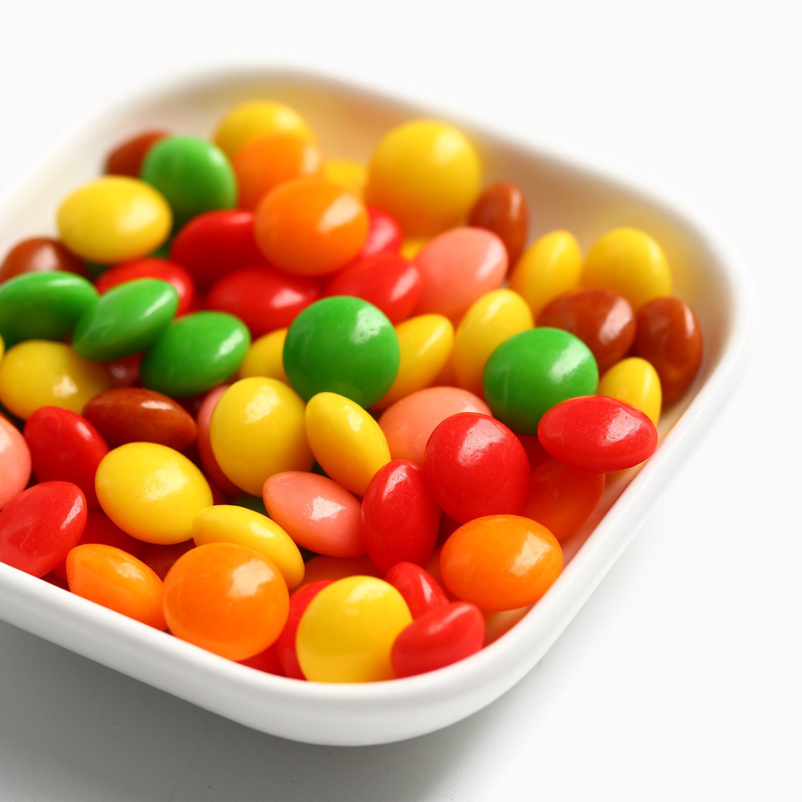 Состав: сахар, пальмовое масло, сыворотка сухая молочная, какао-порошок, какое тертое, молоко сухое обезжиренное, молоко сухое, эмульгатор - соевый лецитин, соль, загуститель - желатин, пищевые красители: Е120, Е133, Е141, Е160С, Е171, глянцеватель - капол, ароматизатор.