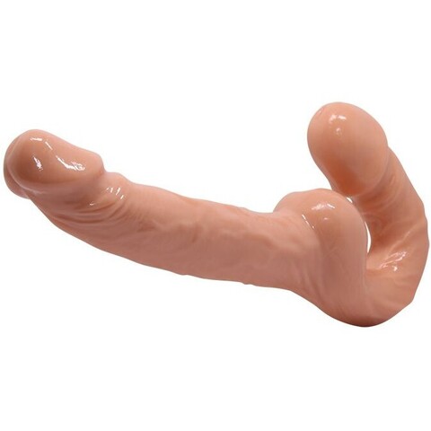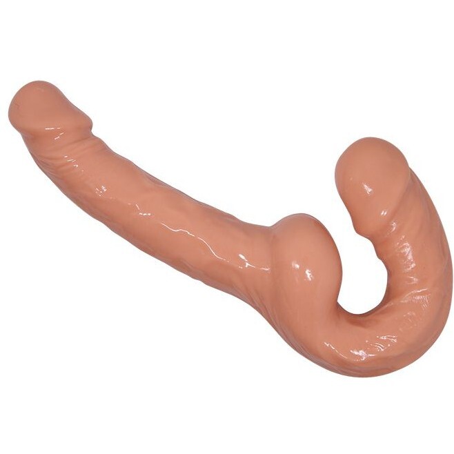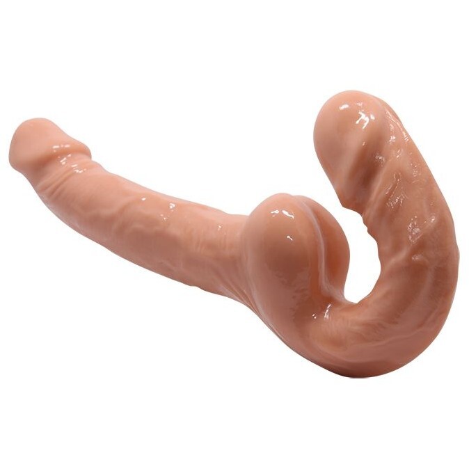 Вагинальный и анальный безремневой страпон реалистичной формы, сделанный из материала "живая кибер кожа".